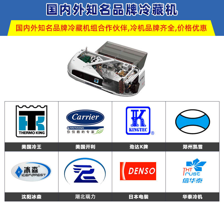 湖北程力冷藏车采用国内外知名品牌制冷机组,具有制冷量大、操作简单、安全可靠等优点。客户可选-5℃,-10℃,-15℃,-18℃至-20℃冷藏机组,可选装的品牌有:上海信凯利、河南新乡信华泰、河南凯达、郑州凯雪、襄阳汉雪、沈阳冰森、上海松芝超酷、广东劲达K牌等其他机组,进口冷藏机组品牌有韩国韩亚、美国开利、美国冷王。根据您的用车需求推荐合适的冷藏机组!该车型可选装”制冷+加热”双温机组(控制温度范围为+20℃至-18℃)可用于东北地区及内蒙 新疆 等严寒地区!