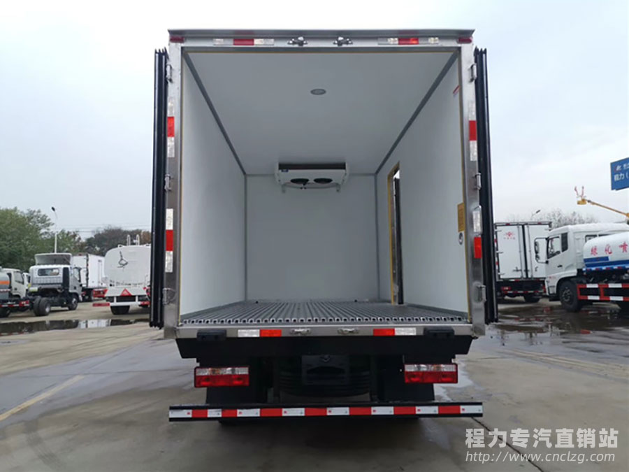 湖北程力冷藏车还可以根据客户需求,加装厢体侧开门、导轨肉钩、温度实时监控记录仪、底板通风槽、货架、备电系统(可外接电源)等。根据客户要求改装成适合运输药品、蔬菜、水果、鲜肉类,冻肉类、海鲜类等各种用途的医药冷藏车、肉钩冷藏车、冷藏保鲜车、冷冻车。导轨肉钩、T型通风槽、右侧开侧门、温度实时监控带打印装置、装海鲜厢体内部面料必须选装不锈钢制造,可选装12ⅴ-24ⅴ外接电源(车辆在停止时,厢体通过外接电源进行制冷)